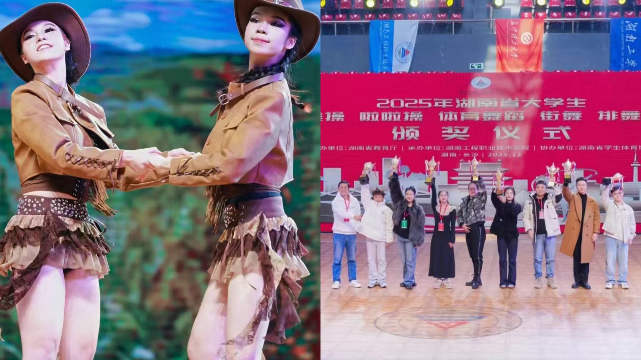 张家界学院通识教育学院排舞队的18名学子,在领队夏卿副院长的统筹指导与余靖、陈亮两位教练的带领下,奔赴赛场与全省高校顶尖队伍同台竞技,最终凭借扎实功底与精彩演绎捷报频传,充分彰显了我校“以美育人、以体润心”的育人成效。