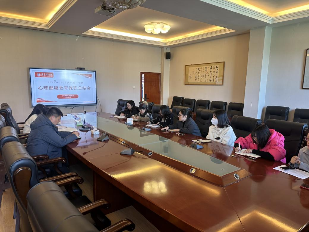 2026年1月9日下午三点,心理健康教研室在博学楼三楼大会议室组织召开心理健康课程学期教学总结研讨会。通识教育学院副院长夏卿出席会议,心理健康教研室全体教师参会。会议围绕本学期“理论+实践”融合式教学实施过程中出现的问题展开深入剖析,并就课程优化方向进行充分交流。